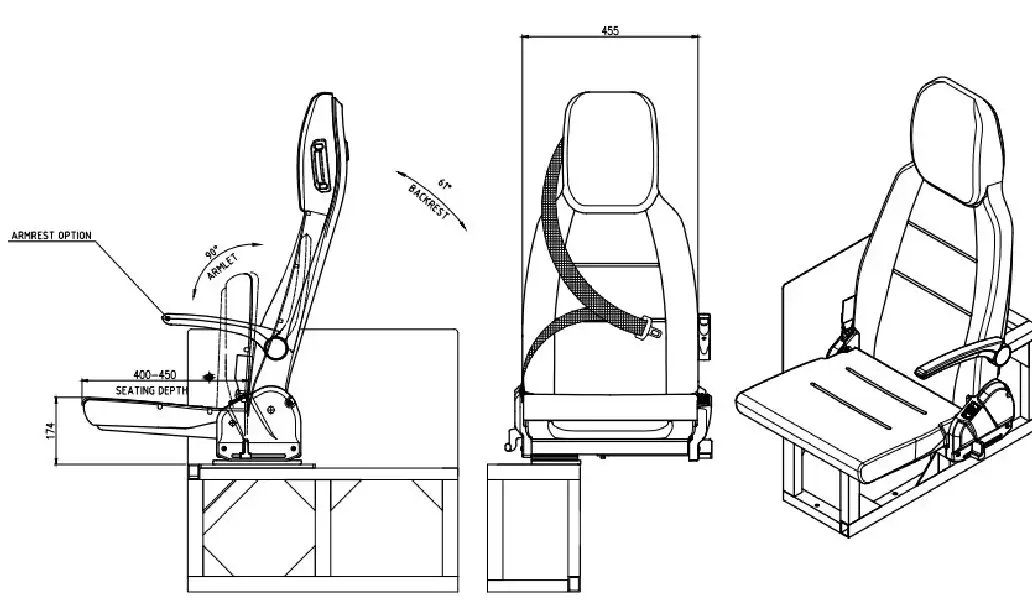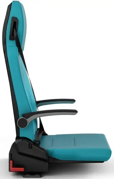 All portions of the seat are trimmed by artifical leather fulfilling ECE R118 International flammability standards