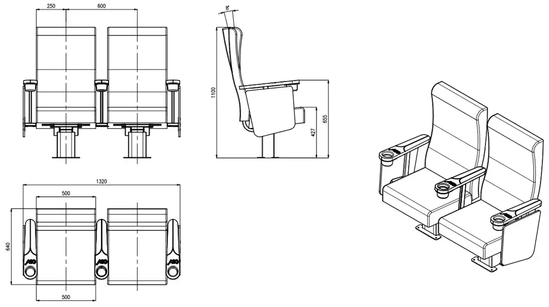 © Constructed based on metal frame with 500mm seat backrest and seat cushion width