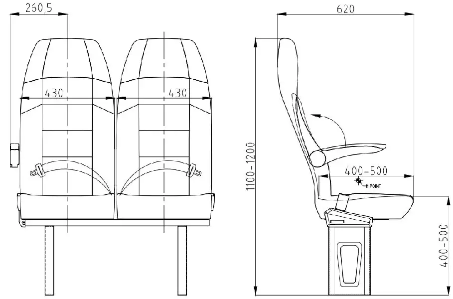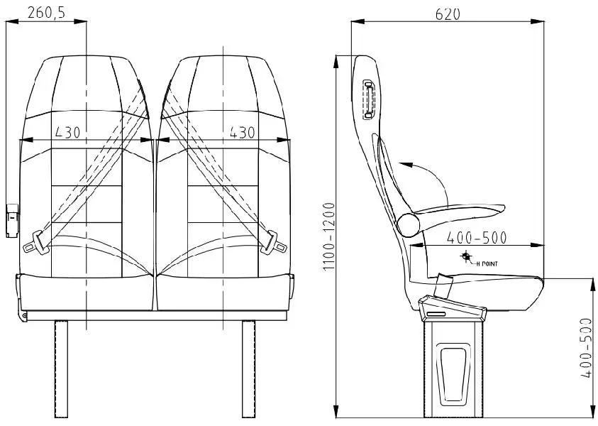 All portions of the seat are trimmed by standart polyester fabric that is already specified in fabric catalogue that will be provided when it is requested officially.