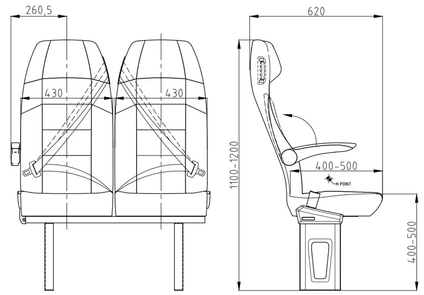© 3P Automatic safety belt with “ALL AGE” direction running into the backrest
