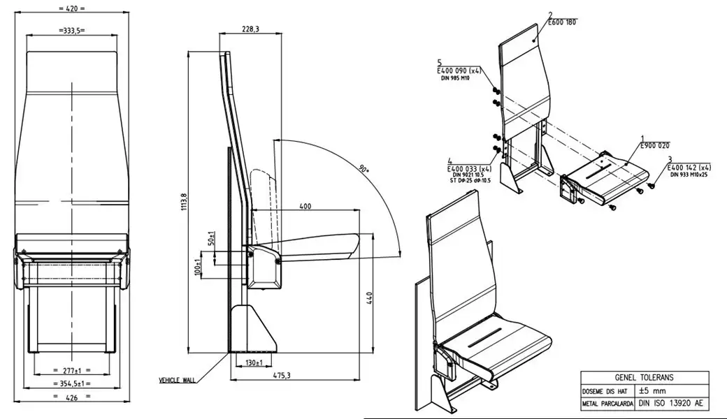 All portions of the seat are trimmed by standart polyester fabric that is already specified in fabric catalogue that will be provided when it is requested officially.